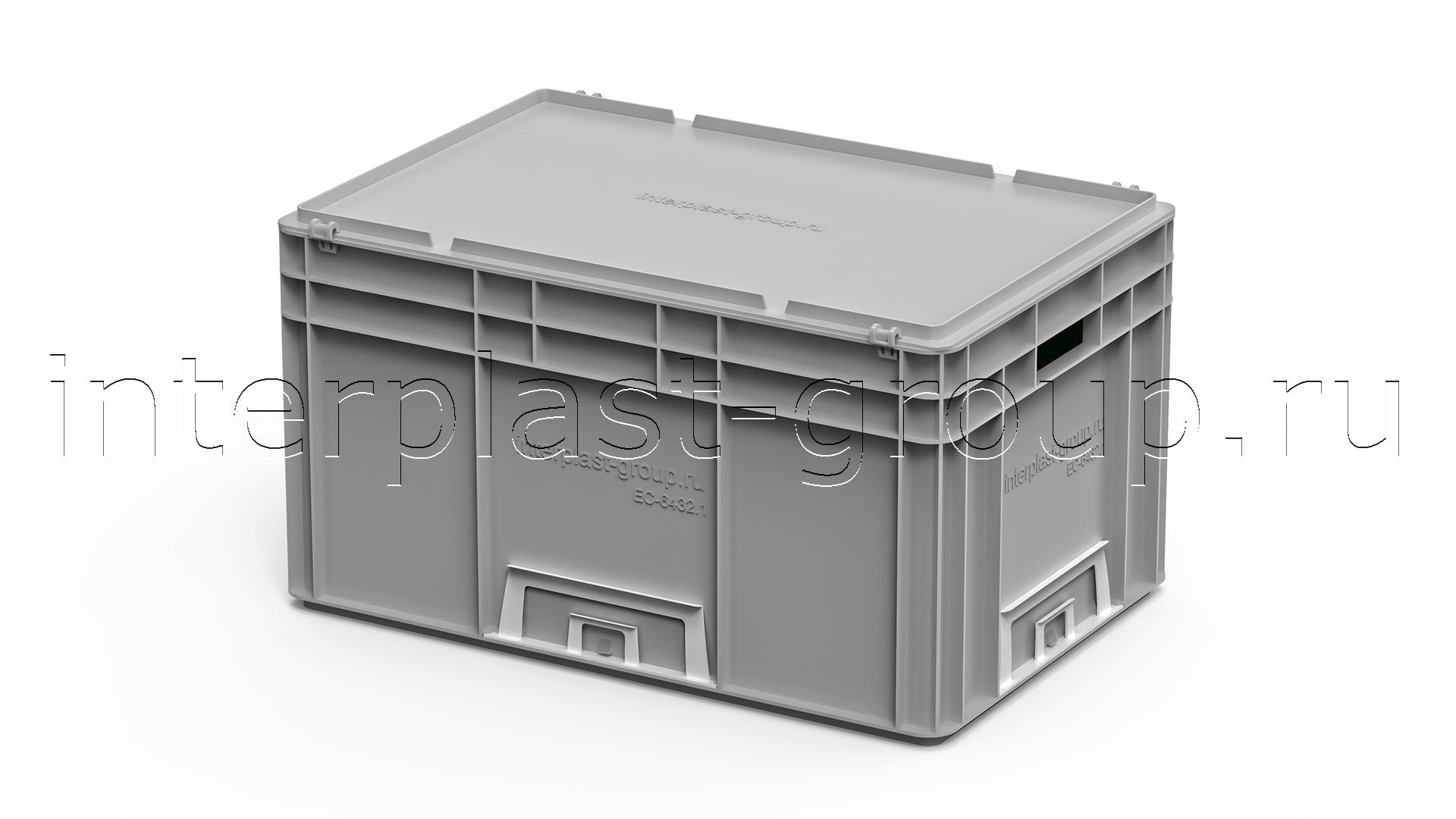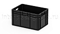Евроконтейнер открытые ручки/сплошное дно (серый), 600x400x320 мм