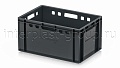 Ящик для мяса Е3 это третий по размеру в линейке мясных ящиков. Разработан специально для использования в мясной промышленности. Отлично штабелируется и собирается в единый сет со всеми ящиками серии. Изготовлен из первичного полиэтилена, и адаптирован для хранения в холодильных и морозильных камерах.