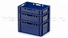Ящик для мяса Е1 это первый по размеру в линейке мясных ящиков. Разработан специально для использования в мясной промышленности. Отлично штабелируется и собирается в единый сет со всеми ящиками серии. Изготовлен из первичного полиэтилена, и адаптирован для хранения в холодильных и морозильных камерах.