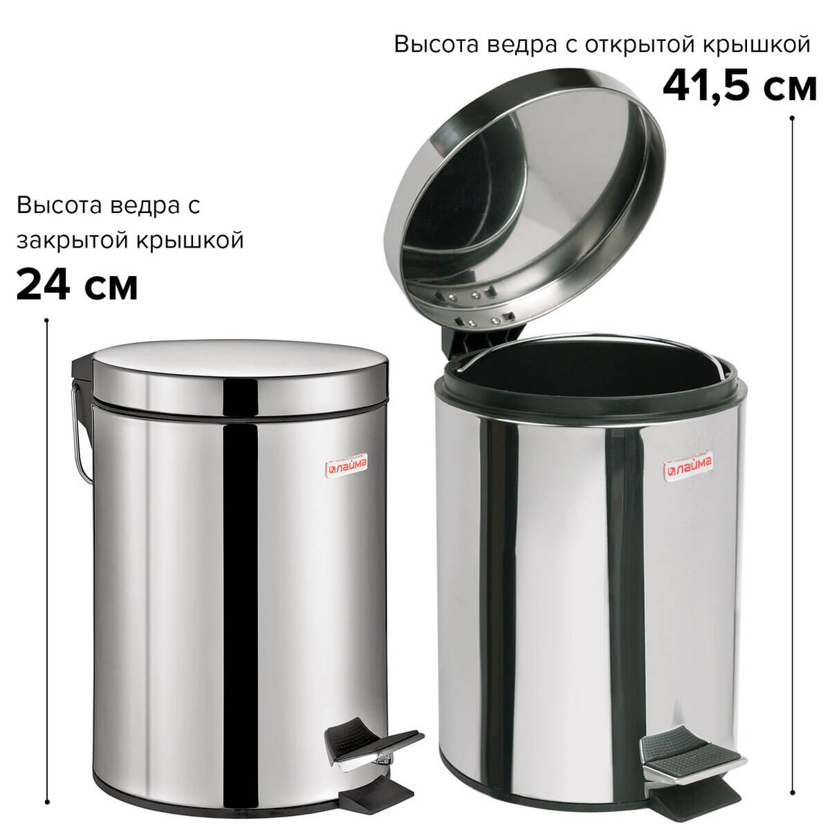 Рекомендуемый объем мешка - 10 литров, что позволяет этому контейнеру легко вписаться в любое пространство. В стальном цвете с зеркальным покрытием он придаст интерьеру современный и стильный вид.