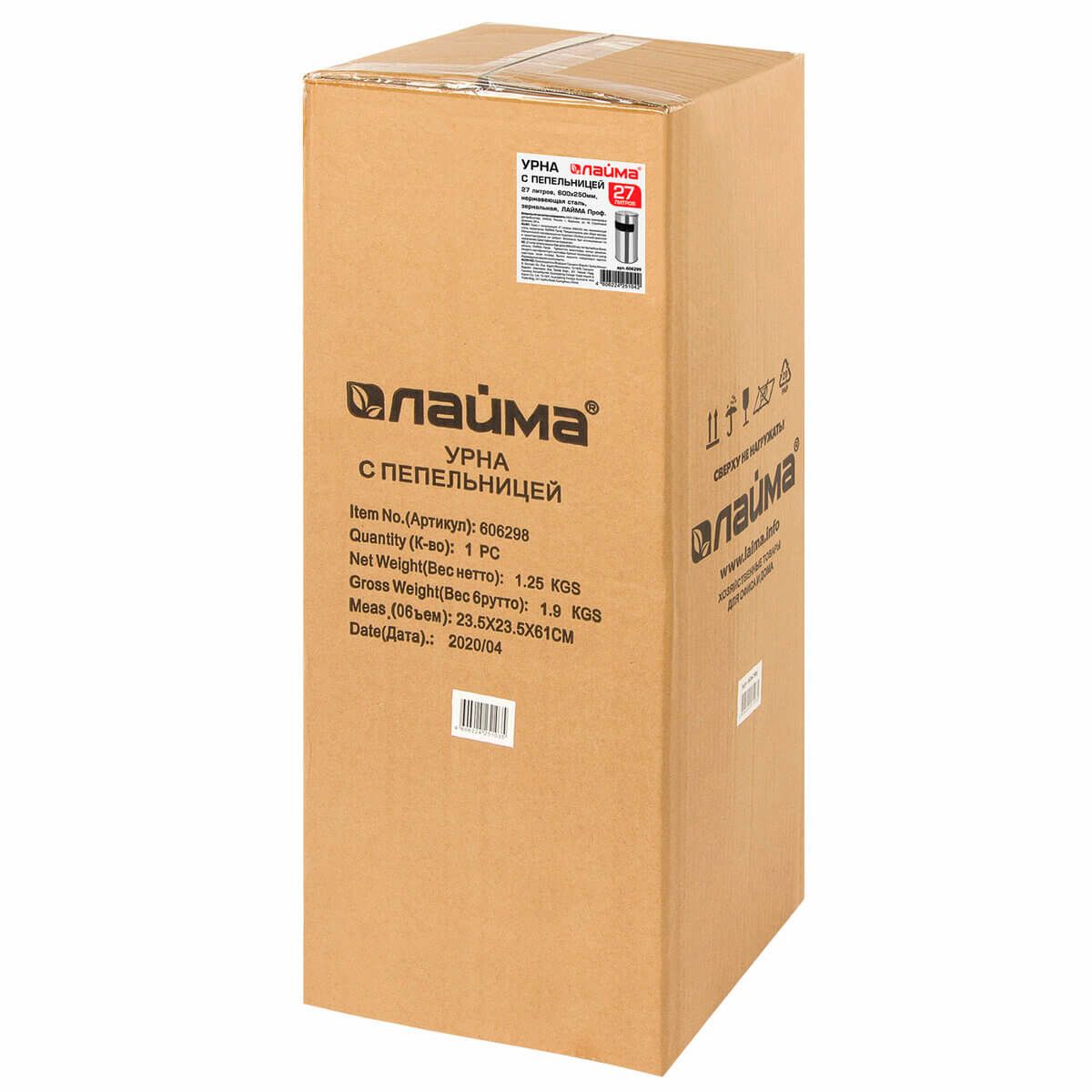 Урна с пепельницей 27 л, нержавеющая сталь, зеркальная, LAIMA PROFESSIONAL в Невинномысске